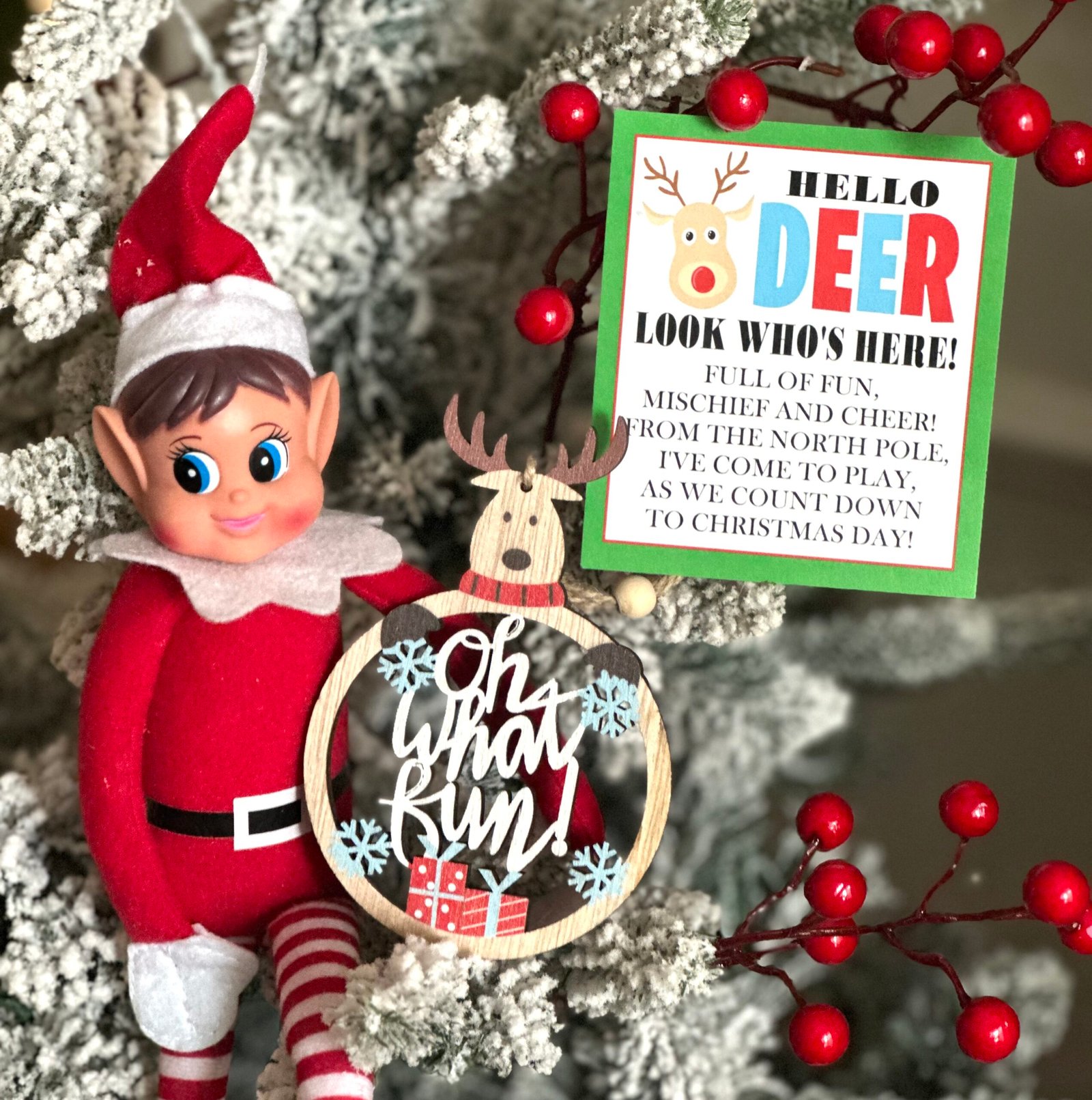 Instructions: Place your card, ornament and elf on the tree or set it somewhere for your child to hang the ornament themselves!